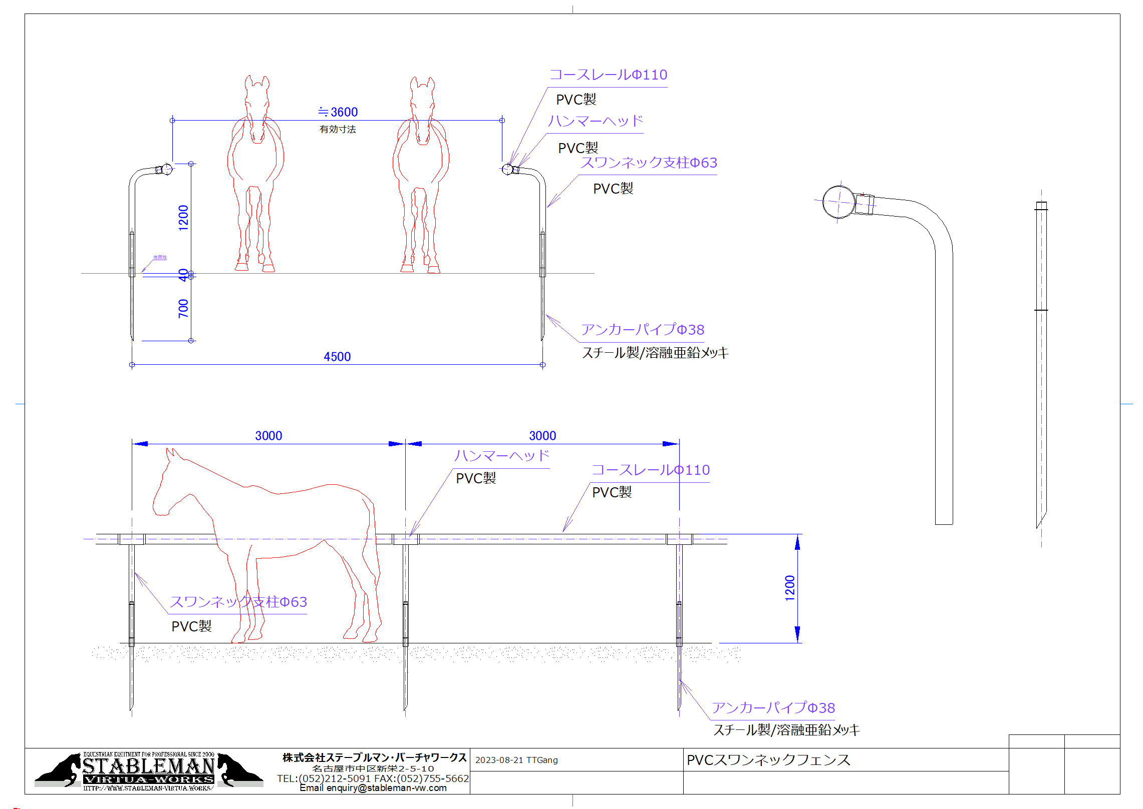 PVC製のレースコース用の支柱です。競走馬施設向け。